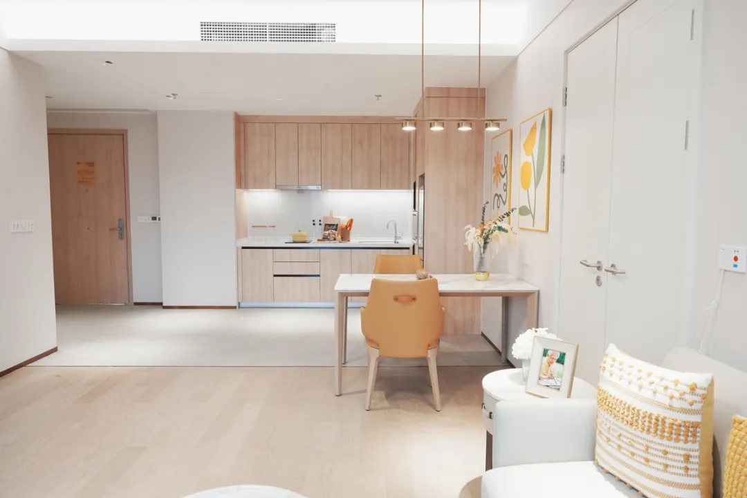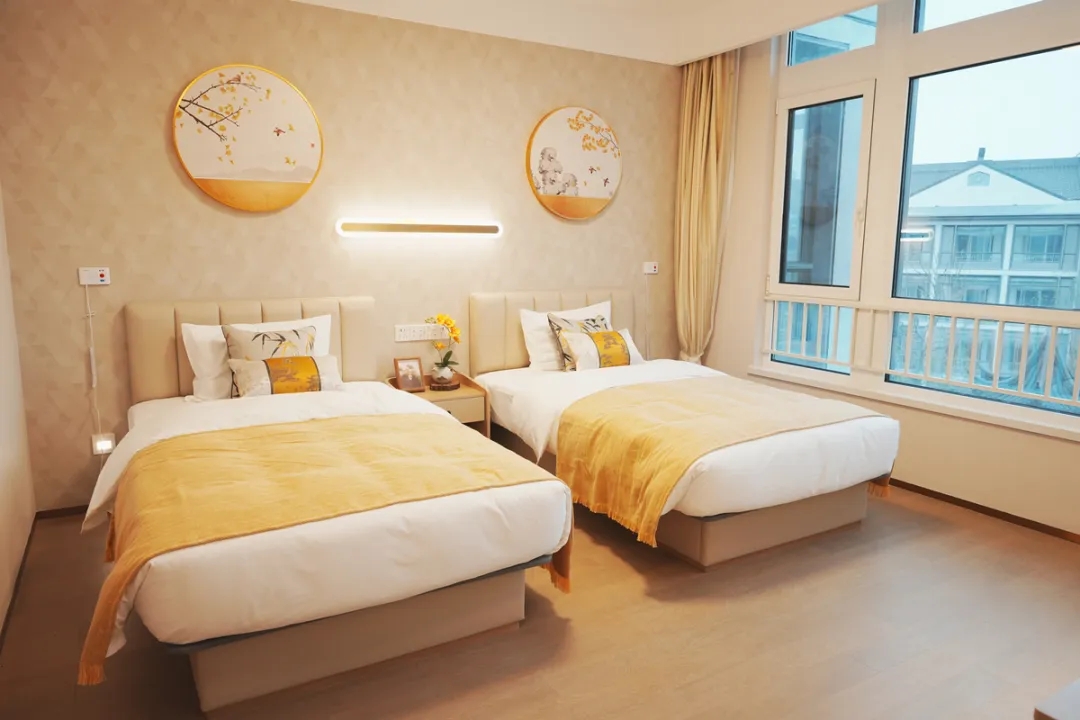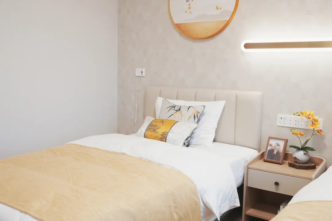 泰康之家在公共区域和房间内采用适合老化的设计,以确保老年人的安全和舒适。公共区域采用无障碍地面设计,安装安全扶手,方便轮椅和老年人轻松通行;同时,每个区域都配备了提升报警系统,以及时应对各种紧急情况。房间内部采用圆角家具,防止碰撞。同时,采用大字符电话、长柄水龙头等适合老年人的设备。